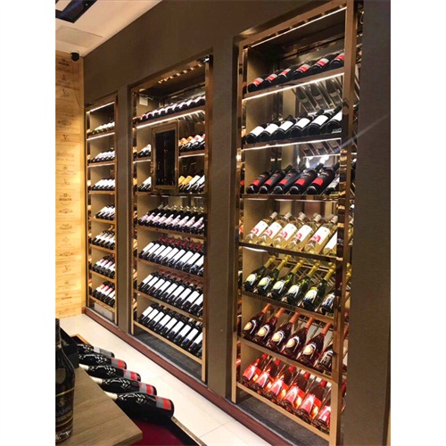 酒庄玫瑰金不锈钢恒温酒柜酒窖定做_不锈钢恒温酒柜厂家图
