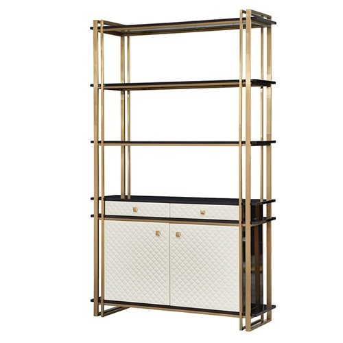 后现代轻奢不锈钢钛金拉丝书架_不锈钢书架生产加工厂图