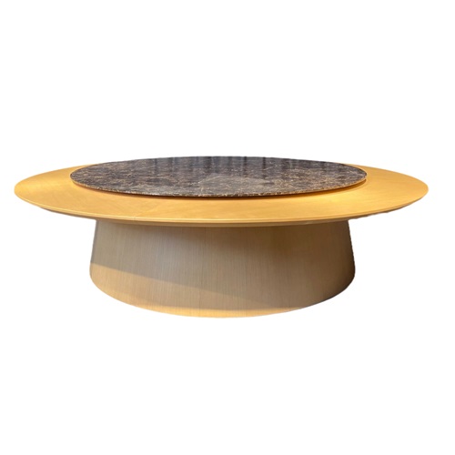 会所12人位实木台面大理石转盘电动餐桌图