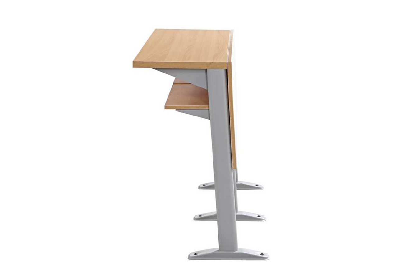 2、写字板:板面采用优质三聚氰胺板、面粘防火板,支架采用钢制铰链活动式写字板,牢固耐用,可承受150公斤重压。
