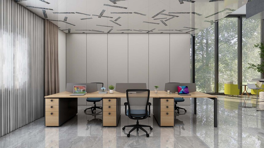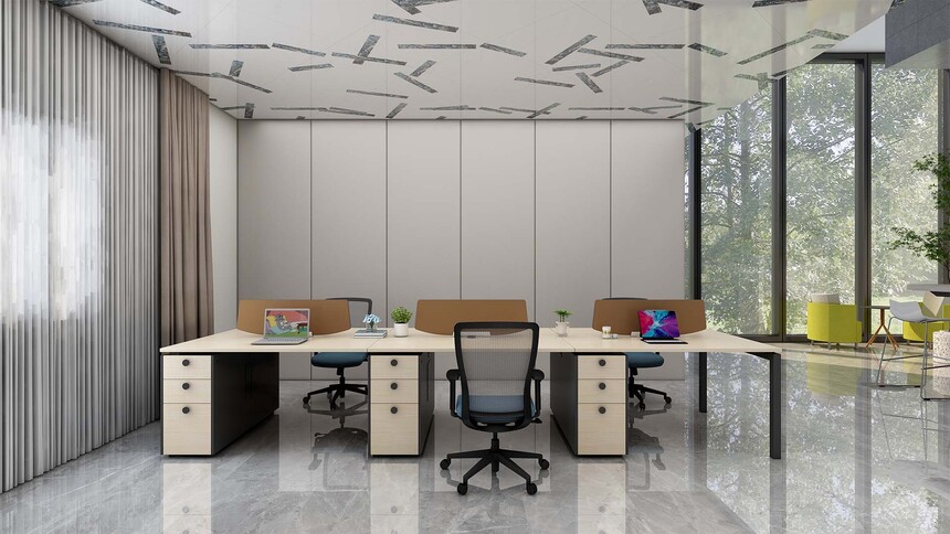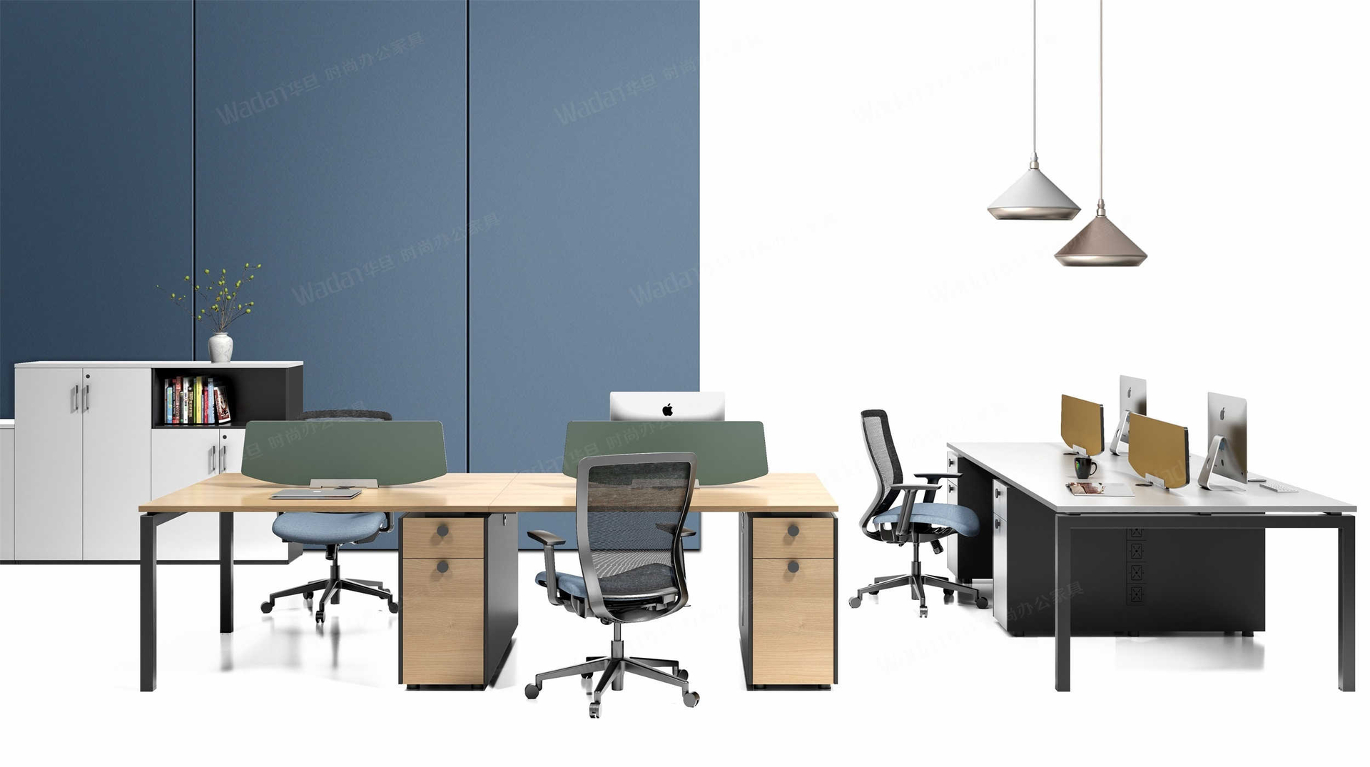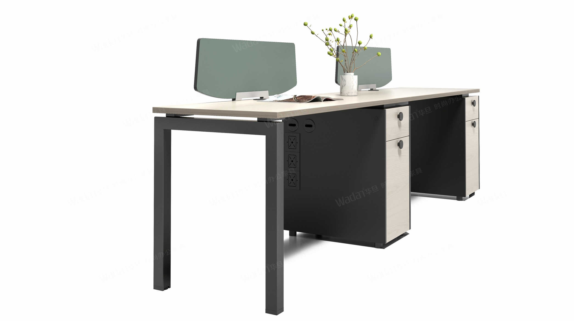 精简的设计,逼真的实木色彩,赋予办公空间自然的属性,附柜支撑台面的同时,储物采用开放与隐藏式收纳为主,附柜预留插座孔,可安装插座,满足日常的办公需求模块化产品设计,部件模块化组合,以黑白两种经典色调为主色黑白造型台脚和多种台面木纹颜色选择,满足不同环境的办公需求。